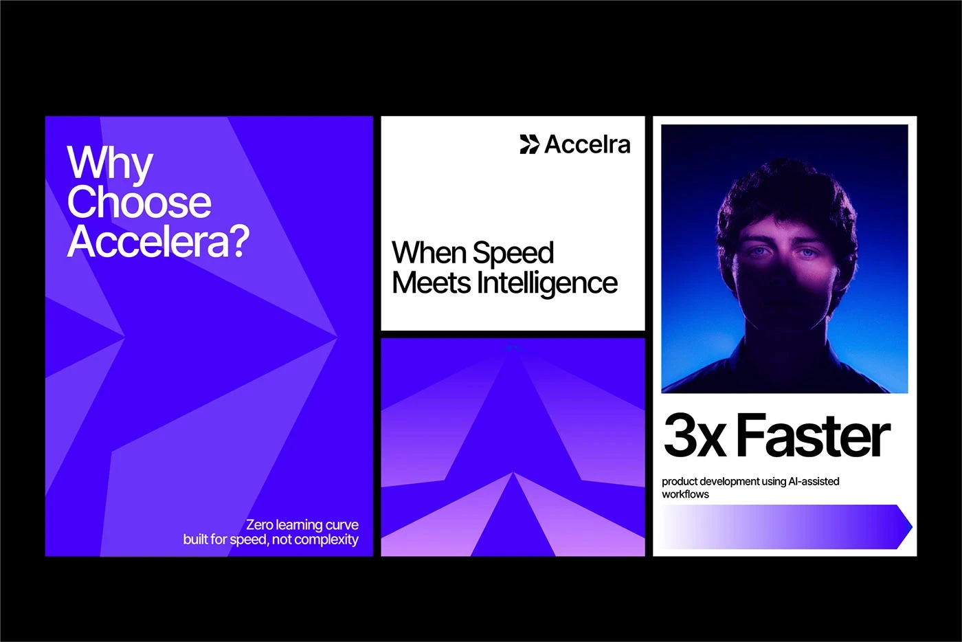Accelera is a forward-thinking AI innovation hub that helps startups, creators, and businesses move from ideas to impact faster. The brand embodies speed, progress, and intelligent growth.